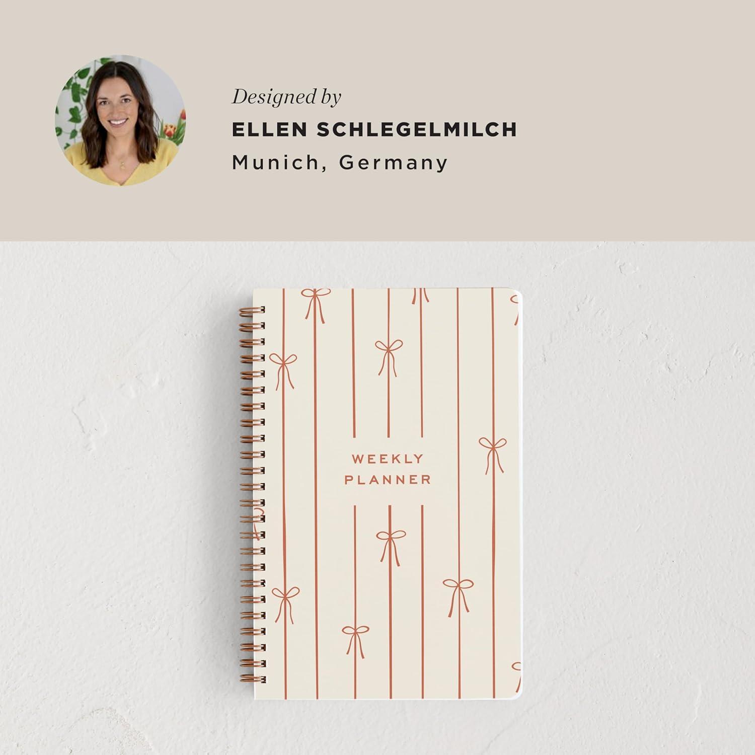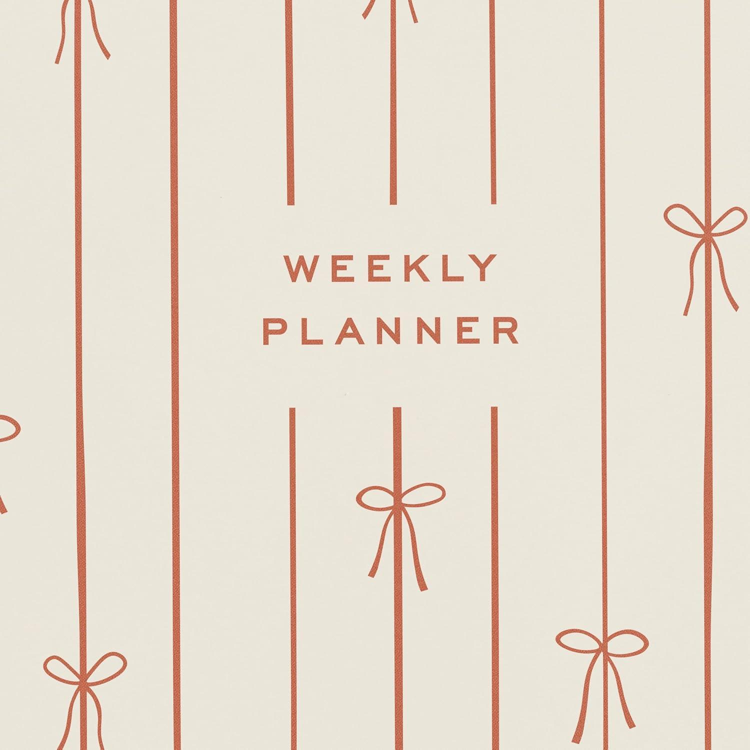 Minted Birds 2026 Weekly & Monthly Undated Planner, 5.5″ x 8.5″ Minimalist Spiral Bound Planner Notebook, 132 Pages, Elegant Undated Calendar Organizer for Work, School & Home(Red Lines of Bows)
