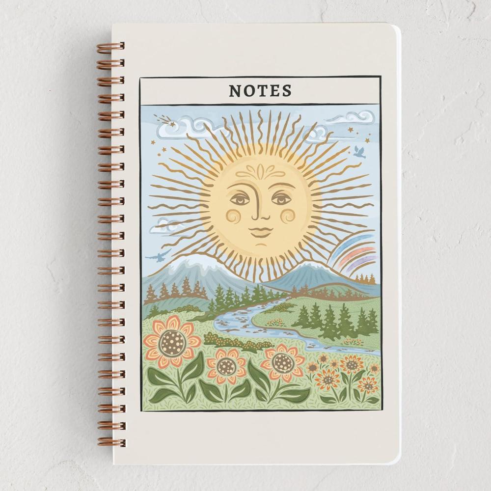 Minted Birds Notebook, Writing Journal for Notes & Journaling, Durable Paper Cover, Modern Aesthetic, Colorful & Simple Spiral Bound Journal Notebook with 160 Lined Pages, 5.5″ x 8.5″(Golden Sun Tarot Card)