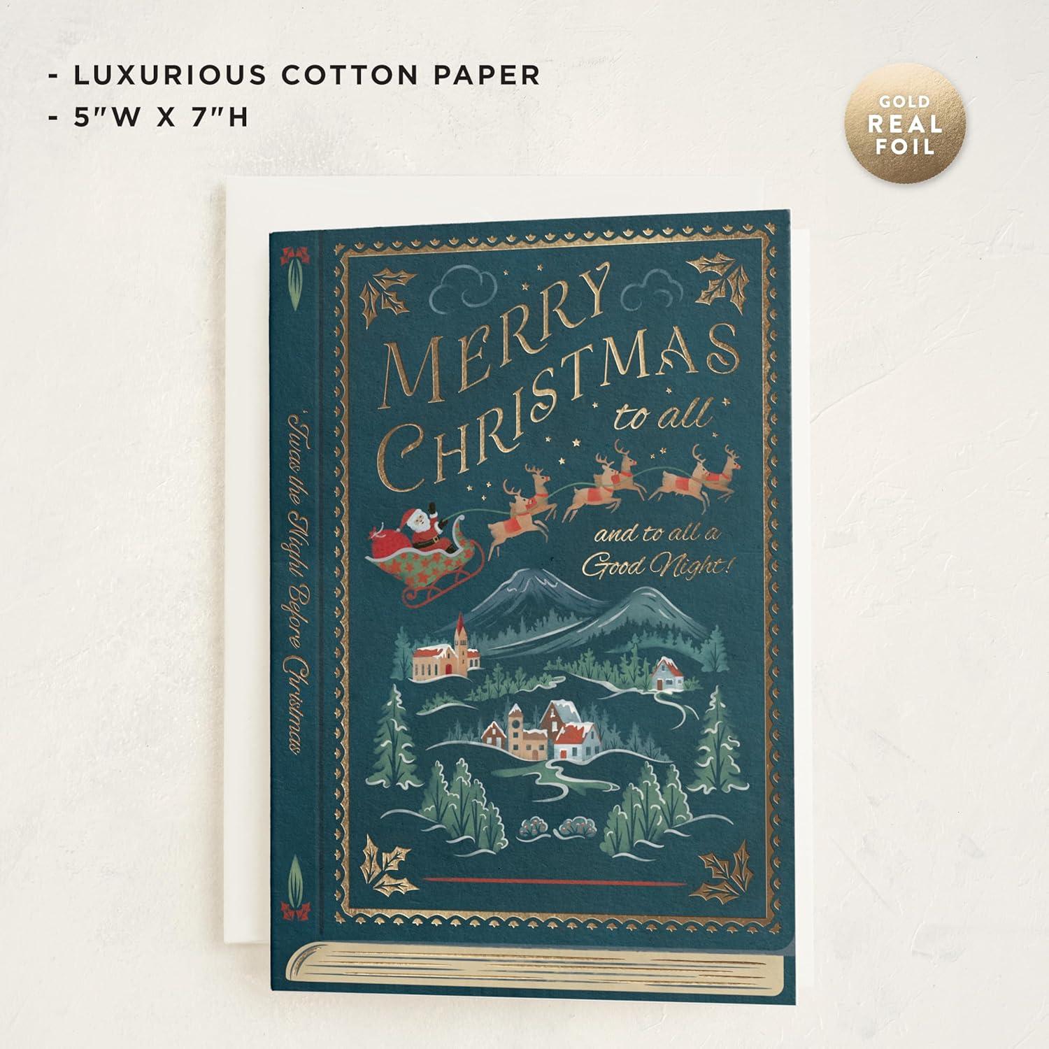 Minted Botanical Bow Holiday Cards, 8 Cards with Envelopes, Folded 5×7 Christmas Card with Red and White Illustrated Ribbon Design, Gold Foil-Pressed, Luxurious Paper, Interior Message Included(The Night Before Christmas)