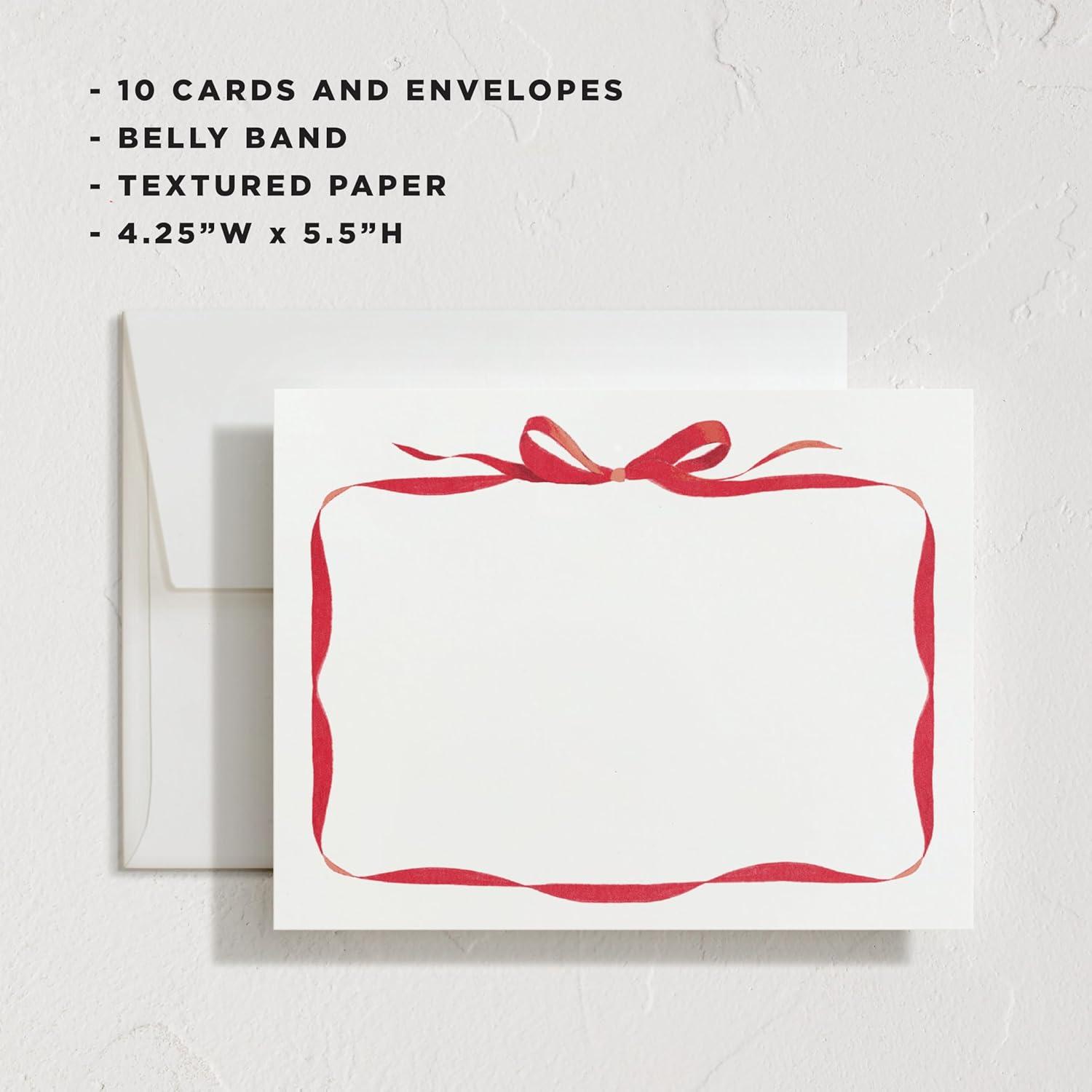 Minted Cheerful Valentine’s Day Stationery Set, Set of 10, Flat Note Cards & Envelopes for Invitiations and Handwritten Thank You Messages, Rainbow with Heart Accent, Gifts for Teachers(Bow)