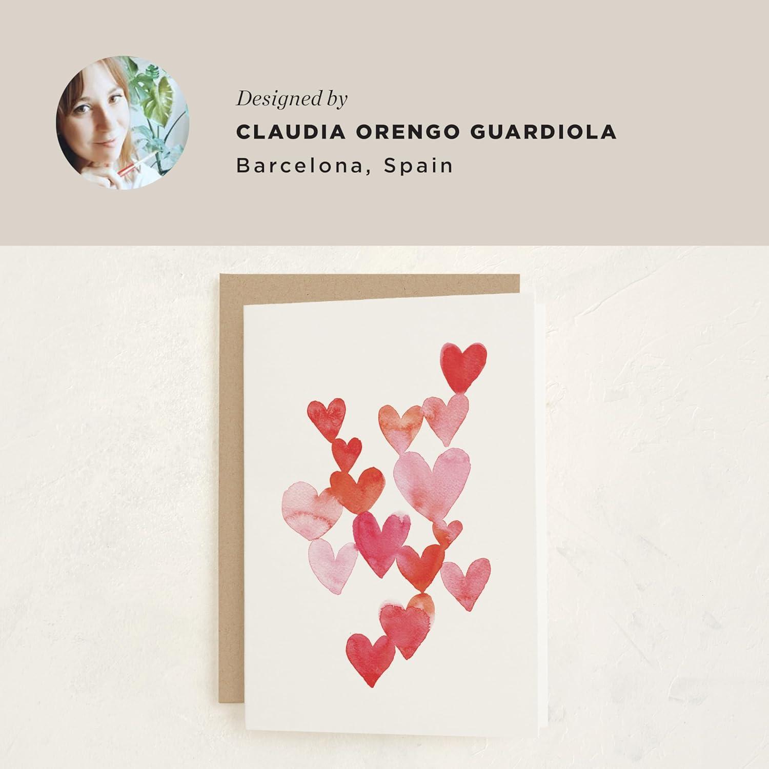 MINTED Love Is Around You Valentine’s Day Blank Card, Watercolor Hearts Illustration Note Card, Premium 5×7 Blank Greeting with Envelope, Romantic Heart Design for Thinking of You, Thank You Celebrations(Love is Around You)